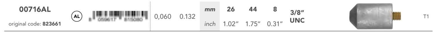 <p>Aluminium Anod till kyl Volvo Penta div. motorer</p><p>Originalnummer 823661</p>