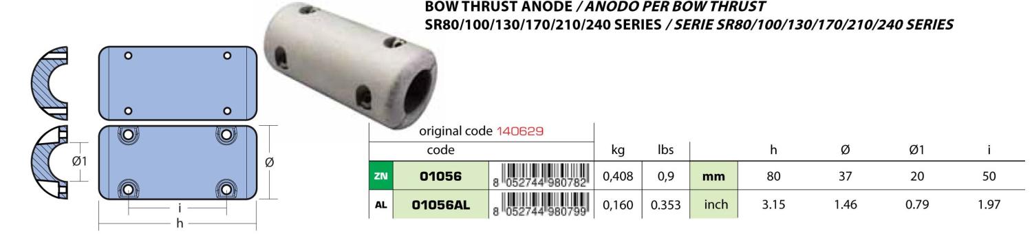 Aluminium anod Sleipner bogpropeller SR80/100/130/170/210/240 org.nr:: 140629 . 01056AL