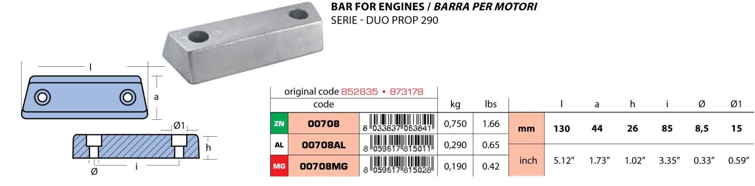 Aluminium för Duo prop 290 original nummer: 852835 873178 00708AL