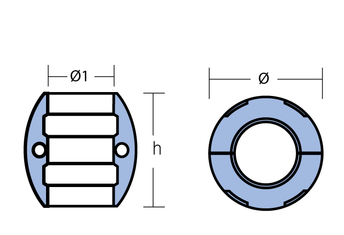Zink anod<p>Dimension HxB (mm): 56x58<br>Håldiameter: 19mm<br>Vikt (kg): 0,530</p><p>Ø (mm): 58</p><p>Ø1(mm):19</p><p>h (mm): 56</p>