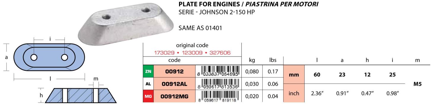 ANOD JOHNSON-EVINRUDE, HONDA 01401AL , 00912AL
