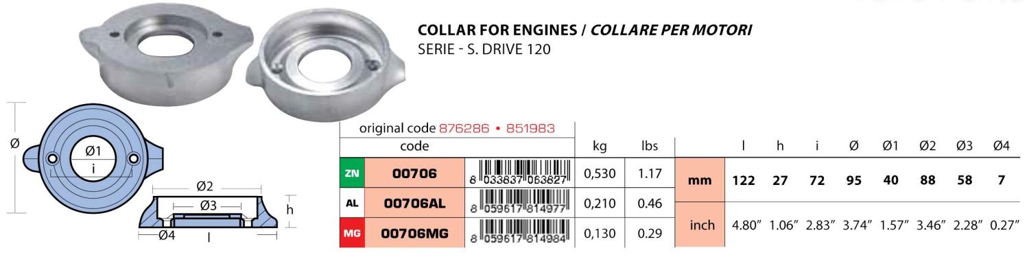 Zink anod för S drev 120 orginal artikelnumme: 876286 851983
