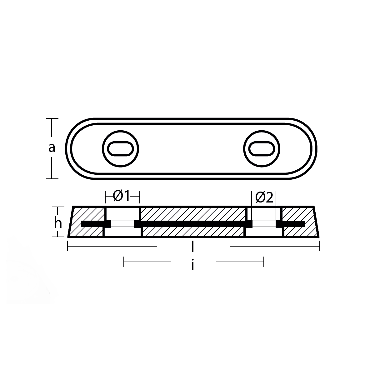 Håldiameter: Hål 1= 32 hål 2= 13x25