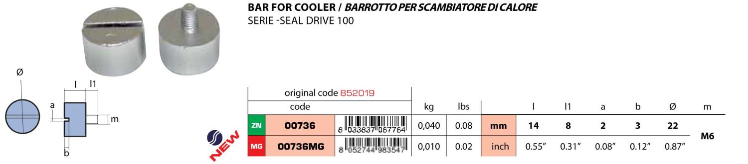 Anod till Volvo Penta S-drev 100S. Originanummer 852019.