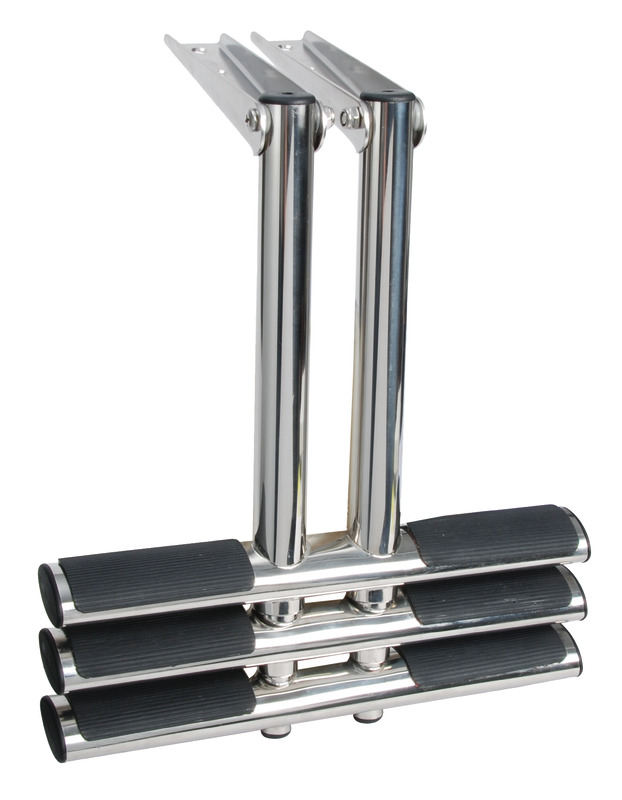 Tillverkad av spegelpolerat rostfritt stål. Halkfria steg. Perfekt för dykning och vattensporter.