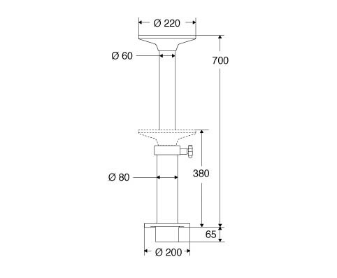 Bordstativ teleskopiskt. Flyttbar.<p>Stol- och bordstativ från Barka. Tillverkade i anodiserat aluminium. Till stativen beställs en fäst- eller glidplatta separat. Fästplattorna finns i två modeller med olika dimensioner och är avsedda för att monteras under en bordskiva eller stol. Glidplattan finns även den i två dimensioner och kan flyttas i längdled 13-20cm genom att lossa ett handtag bra till stolen då den kan skjutas framåt och bakåt.<br><br>Bas Ø (mm): 180<br>Beställningsvara: Ja<br>Längd (max mm): 700<br>Längd (min mm): 380<br>Stol/Bord Fäste Ø (mm): 220<br>Tub Ø (mm): 80</p>