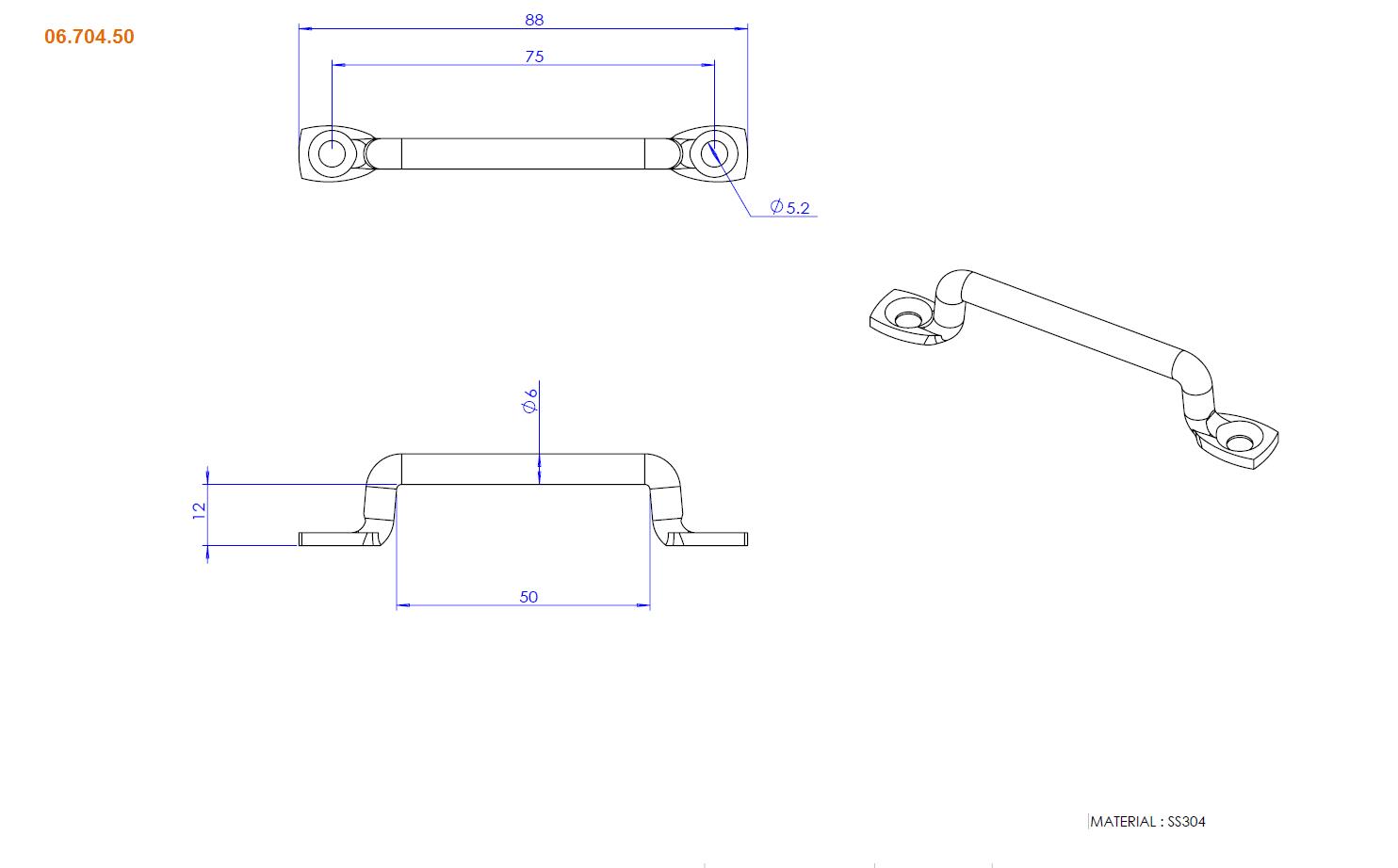 Bygel för fixering av typ nylonband. Tillverkad i spegelpolerat rostfritt AISI316.