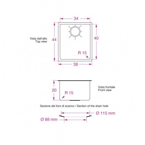 Hål lämpligt för 3"1/2 (88mm) avloppsstos: PI1290GP - PF4090GP och maceratorer. (Ingår ej)
