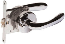 Dörrlås höger/vänster utanpåliggande med låsning. Komplett. För 18-23 mm tjocklek på dörr. 83 mm längd på handtag. Låskista tjocklek 9 mm.