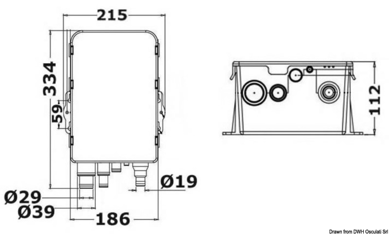 Lådan har flera inlopp och kan därför hantera avloppsvatten från flera ställen samtidigt. Den är försedd med pump och electronisk nivåbrytare. Locket har snäpplåsning för att man enkelt ska kunna rengöra den