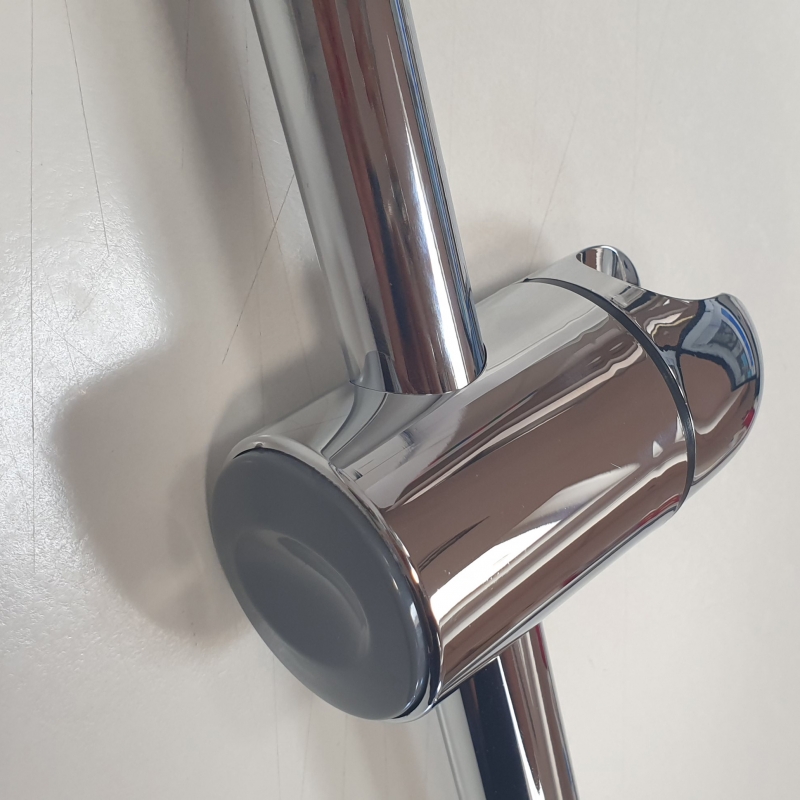 Kromad mässingsstång, kromade ABS-fästen och glidreglage.