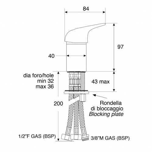 Anslutning: st 1/2" inv och 1st 3/8" utv.