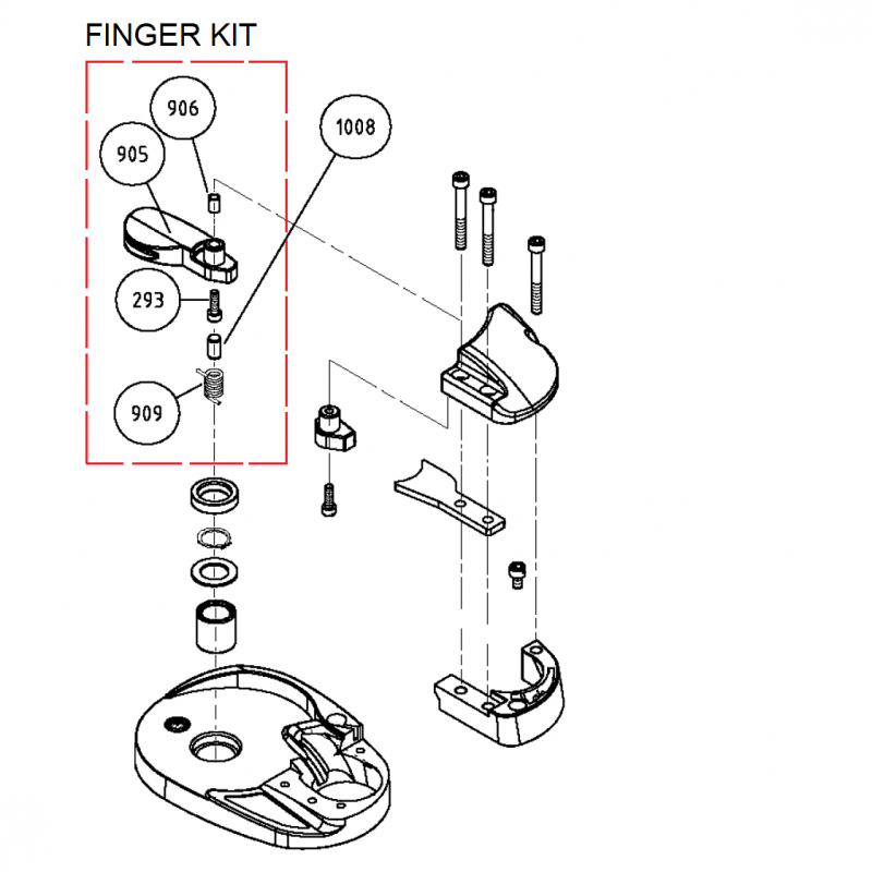 Finger kit som passar X2 , Project 1000 , Progress 1 innehåller#293 Skruv M5x16mm #905 Finger Plast #906 Distans #909 Fjäder #1008 Tapp 7x14 code: 474023