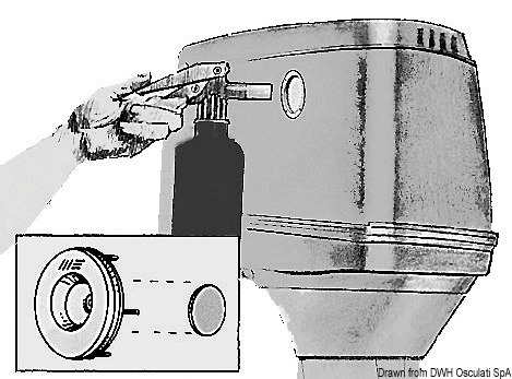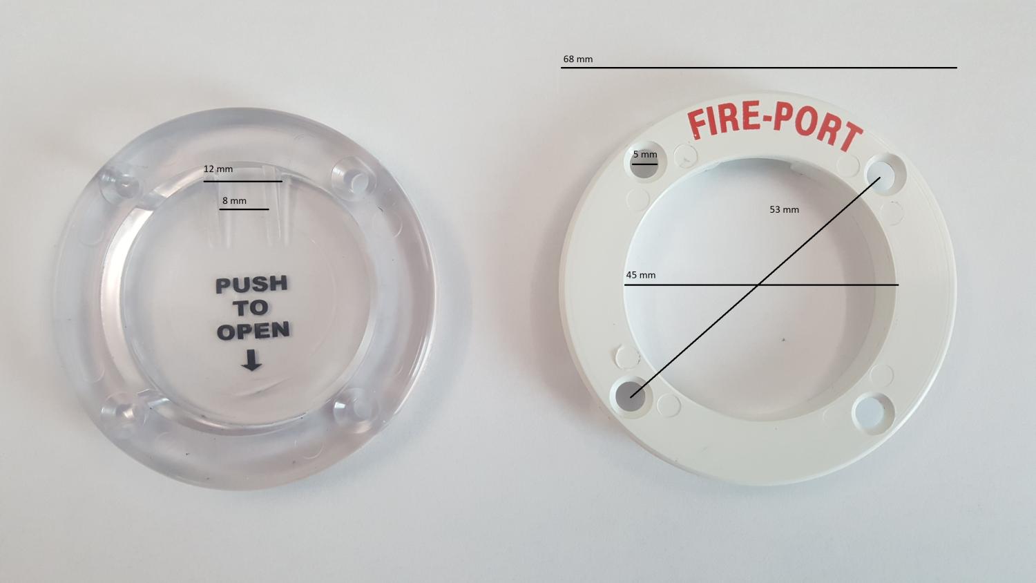 Utformad för att komma åt motorrummet med en brandsläckare utan att öppna. Hålet stängs med en vattentät PVC-flik som kan brytas.