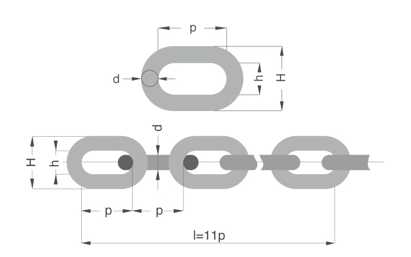 Galvaniserad kätting kalibrerad. Med brottvärden enligt ISO 4565/DIN766.