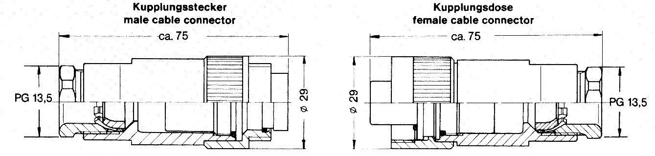 attentät däckskontakt hane med 2 anslutningar +/- matning. 50V 16A IP66 Kabel area 2x 2,5mm²code Philippi: 4 4501 4402 / 445014402