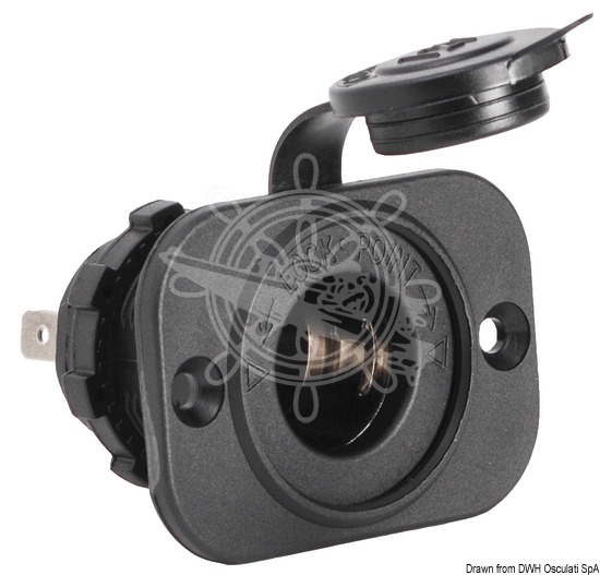 100 % vattentålig, antingen med stängt skyddskåpa eller med låsbar kontakt, utrustad med en speciell vattentät krage och ett "lock-in"-system som låser kontakten genom att vrida; utformad för kontaktmontering med bakmuttrar eller två skruvar ; lämplig för tändare och mobiltelefoner.