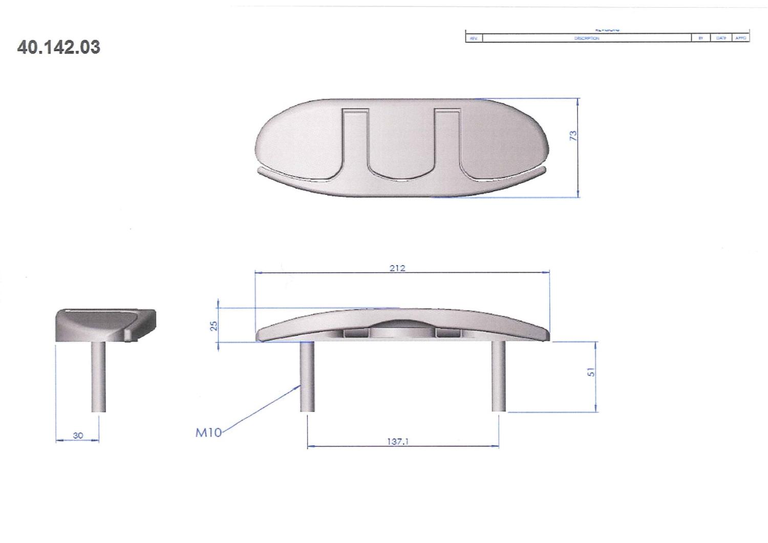 <p>Knape uppfällbar i högglanspolerat rostfritt stål AISI 316</p><p>Längd (mm): 212</p><p>Bredd (mm): 73</p> <p>Höjd (mm): 25 </p> <p>Bult infästning : M10 </p> <p>C/C (mm): 137 </p> <p>Läng bult (mm): 51 </p> <p>Belastning normal (kg): 1300</p> <p>Brottsgräns (kg): 1800</p>