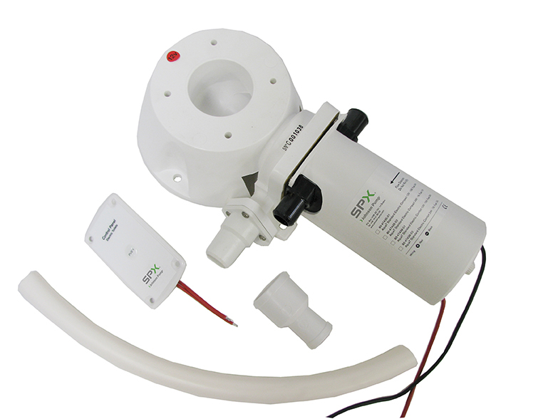 Satsen innehåller: bas, pump och elmotor kompatibel med toalettenheter från JABSCO, SPX, RARITAN, GROCO.MATROMARIN