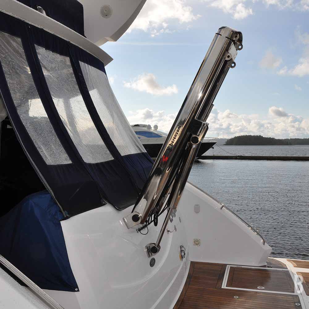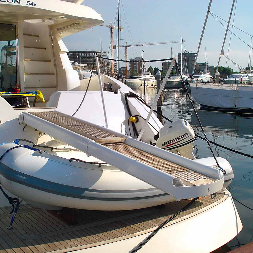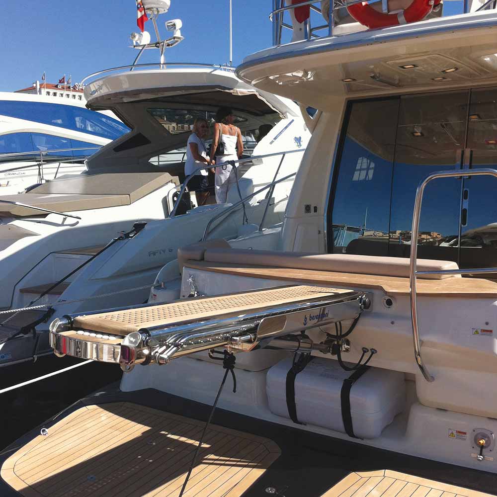 Hydrauliska landgångar från Besenzoni av mycket hög kvalitet. Modeller finns i flera olika storlekar längder material finish storlekar mm. Fasta vikbara teleskopiska rörliga i höjd och sida flera utföranden är tillgängliga. Flera landgångar kan också användas som dävert och kan då lyfta vikter från 100 till 700kg lämpligt för gummibåten. Modeller med utvändigt och infällt montage. Fjärrstyrda landgångar manövreras lätt ifrån fjärrkontrollen. Levereras med elektriskt hydraulpaket. Kontakta Ital Nordic för mer information och separat katalog för att se vilken landgång som passar din akterspegel. Alla el-hydrauliska landgångar lagerföres ej utan tas hem på begäran. Hemtagningsfrakt tillkommer.