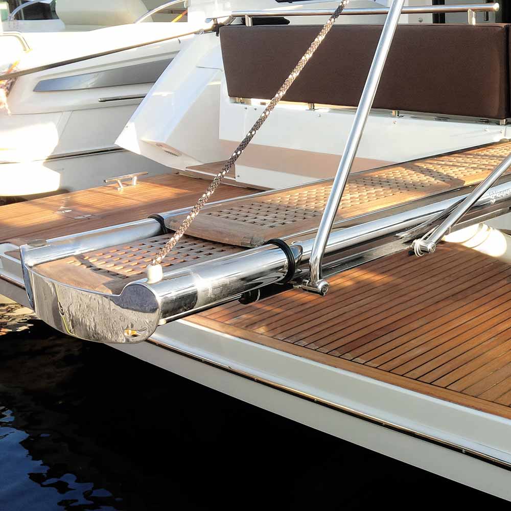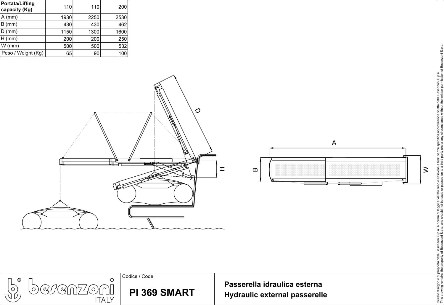 Hydrauliska landgångar från Besenzoni av mycket hög kvalitet. Modeller finns i flera olika storlekar längder material finish storlekar mm. Fasta vikbara teleskopiska rörliga i höjd och sida flera utföranden är tillgängliga. Flera landgångar kan också användas som dävert och kan då lyfta vikter från 100 till 700kg lämpligt för gummibåten. Modeller med utvändigt och infällt montage. Fjärrstyrda landgångar manövreras lätt ifrån fjärrkontrollen. Levereras med elektriskt hydraul paket. Kontakta Ital Nordic för mer information och separat katalog för att se vilken landgång som passar din akterspegel. Alla el-hydrauliska langångar lagerföres ej utan tas hem på begäran.Hemtagningsfrakt tillkommer.