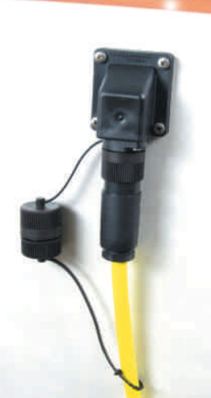 0 V/50 Hz -16 A (2 + PE). Inkluderar kopplingshylsa, flänsplugg, 2 skyddskåpor och vinkelhus.