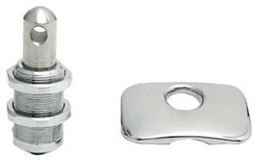 Lucklås tillverkad av rostfritt stål, försedd med fjäder belastad knapp med hål för hänglås.