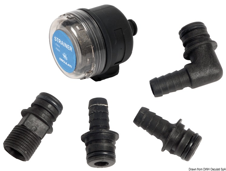 4-membransystemet förhindrar de pulsationer som vanligen förekommer i de andra färskvattenspumparna med en halvöppna kran. Levereras med 4 st anslutningar (2 x 1/2 "gängor och 2 x 14 mm slang adaptrar) och inloppsfiltret,