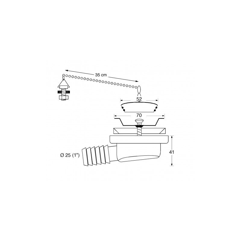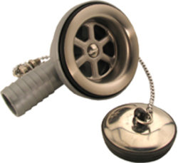 Sil med slanganslutning 25mm och propp med kedja i rostfritt . PF2535