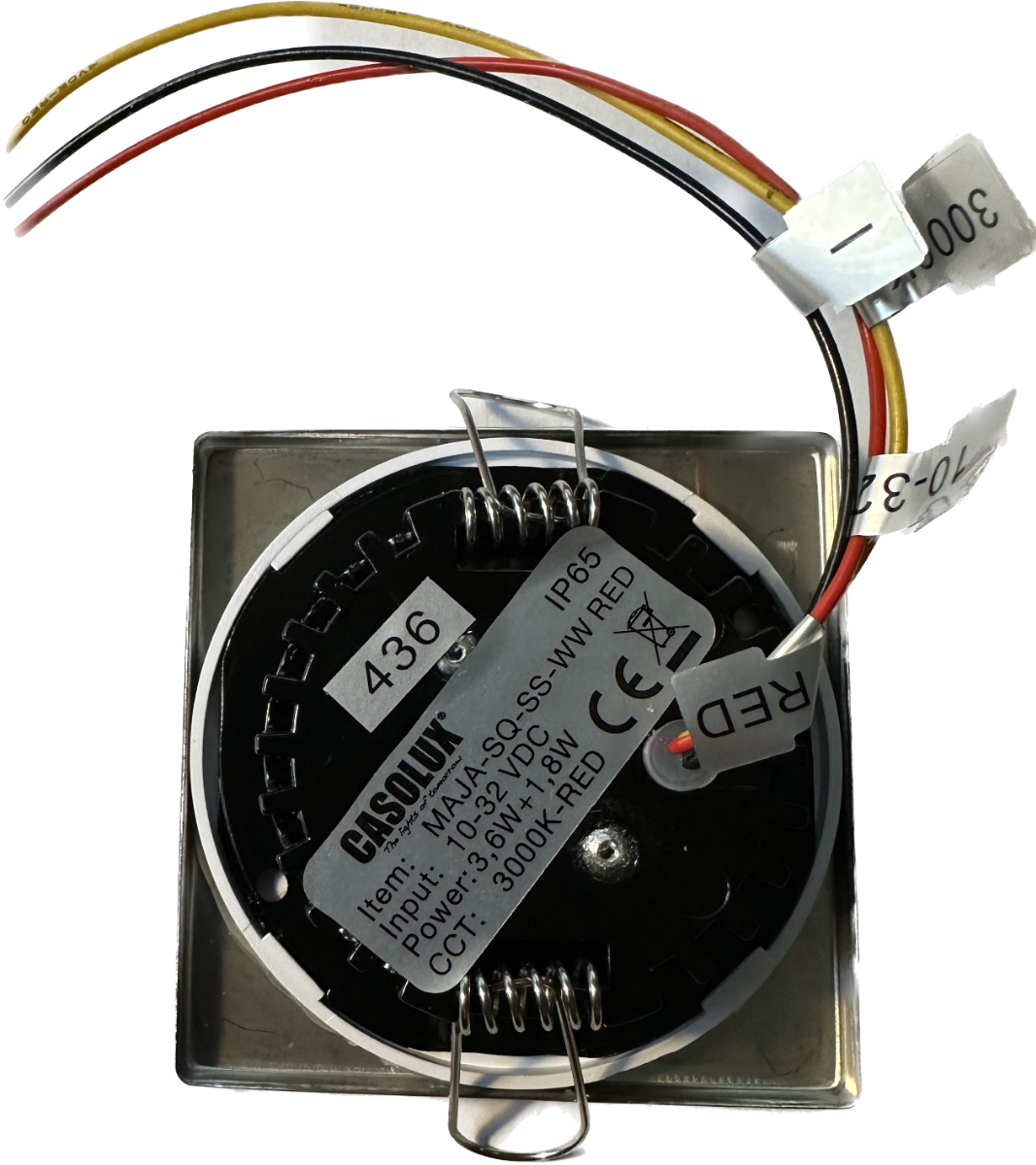 Dimbar spot från Casolux med IP65 klassning med vitt och rött ljus .