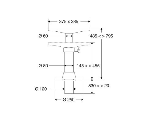 Teleskopgassbordspedestel genom golv Code: 10101/R/35