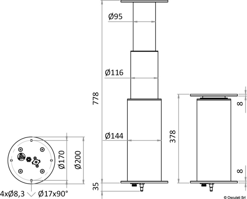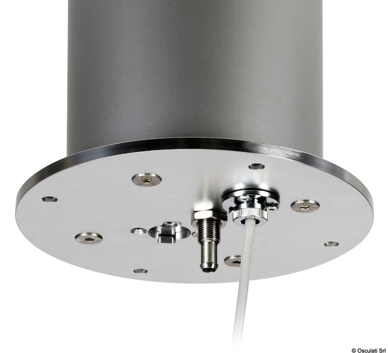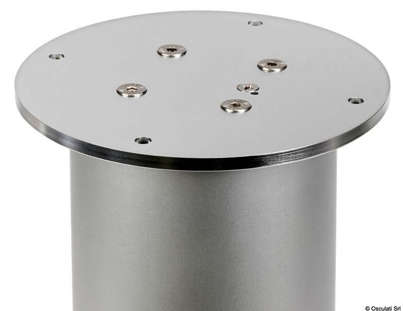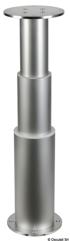 3-stegs elektriskt runt bordspiedestal. Tillverkad av silveranodiserad aluminium, för användning inomhus och utomhus, med antirotationssystem.