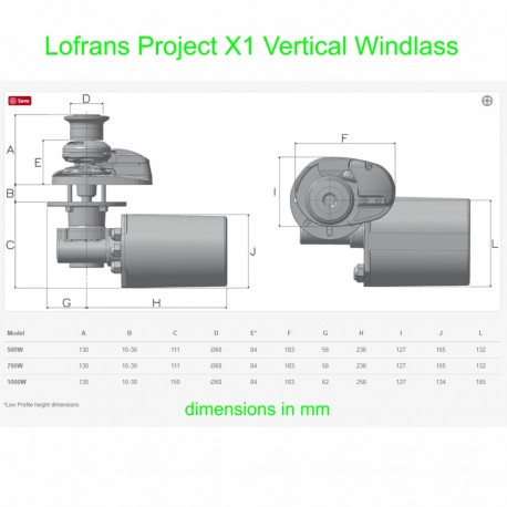 X1 för båtar mellan 5-14m beroende på motorstorlek. Denna model är ovandelen gjord i svart kromad brons.  Motor har en skyddskåpa som skydd för vatten och fukt som har IP67 klassning  med motor effekt från 500-1000W med max dragkraft 630-900 kg. Kättinghjul för 6-8mm finns och fungerar  även kätting/lin kit med 10-14mm treslagen lina.